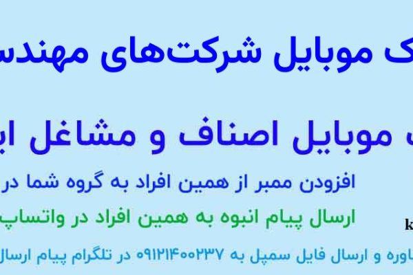 جهت دریافت رایگان بخشی از بانک موبایل برنامه‌نویسان و دانشجویان رشته کامپیوتر، در تلگرام به شماره ۰۹۱۲۱۴۰۰۲۳۷ پیام ارسال کنید و کسب‌وکار خود را معرفی کنید. ما بخشی از این اطلاعات را به‌صورت فایل اکسل به شما ارائه خواهیم کرد.