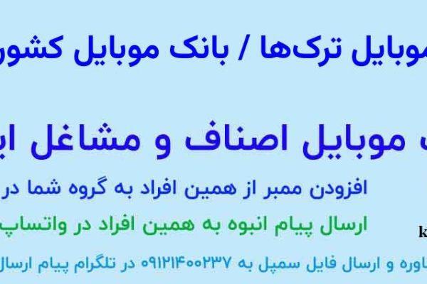برای دریافت رایگان بخشی از بانک موبایل مرتبط با کسبوکار خود، کافی است در تلگرام به شماره ۰۹۱۲۱۴۰۰۲۳۷ پیام ارسال کنید و کسبوکار خود را معرفی نمایید. ما اطلاعات مورد نظر را در قالب یک فایل اکسل برای شما ارسال میکنیم.