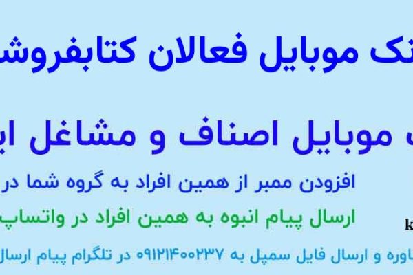 جهت دریافت بخشی از بانک موبایل مورد نظر خود به صورت رایگان، لطفاً در تلگرام به شماره ۰۹۱۲۱۴۰۰۲۳۷ پیام ارسال کنید و کسب و کار خود را معرفی نمایید تا بانک موبایل به صورت فایل اکسل برای شما ارسال شود.