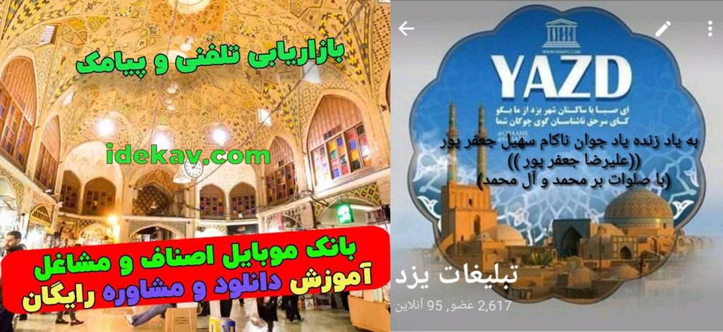 در ادامه توضیحات گروه تلگرامی تبلیغات یزد که بانک موبایل و بانک اطلاعاتی از اعضای فعلی و قبلی آن قابل استخراج هست، آورده شده است: