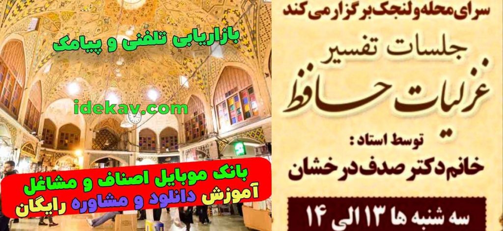 لطفا در تلگرام به شماره ۰۹۱۲۱۴۰۰۲۳۷ پیام ارسال فرمایید و در خصوص کسبوکارتون هر توضیحی نیاز هست بفرمایید. هم این امکان هست تا بانک موبایل تفسیر حافظ سرای ولنجک برای شما ارسال شود و یا به صورت جامعتری بانک موبایل از گروههای دیگری که مرتبط با این حوزه هستند برایتان تهیه شود و پس از تایید شما برایتان ارسال شود.