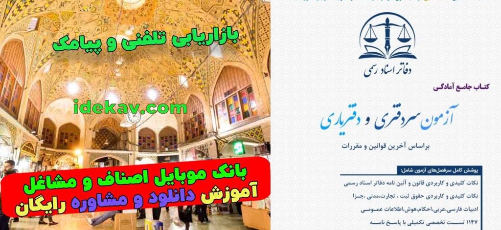 در سامانه بازاریابی ایدهکاو، این امکان وجود دارد که بانک موبایل و اطلاعات شامل شماره موبایل، نام، نام خانوادگی، نام کاربری در تلگرام و … از گروه تلگرامی کارگروه علمی و عملی ، سردفتران ودفتریاران کشور،با مدیریت دکتر سالاریان سردفتر ۳۳۸مشهد تهیه و برای شما ارسال شود. بانک موبایل به صورت فایل پیدیاف و اکسل تهیه میشود.